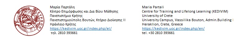 Το Κέντρο επιμόρφωσης και Δια Βίου Μάθησης (Κ.Ε.ΔΙ.ΒΙ.Μ) του Πανεπιστημίου Κρήτης και ειδικότερα το Εργαστήριο Προηγμένων Μαθησιακών Τεχνολογιών στη Δια Βίου και Εξ Αποστάσεως Εκπαίδευση [Ε.ΔΙ.Β.E.A], διοργανώνουν το Β κύκλο του Επιμορφωτικού Προγράμματος με τίτλο: